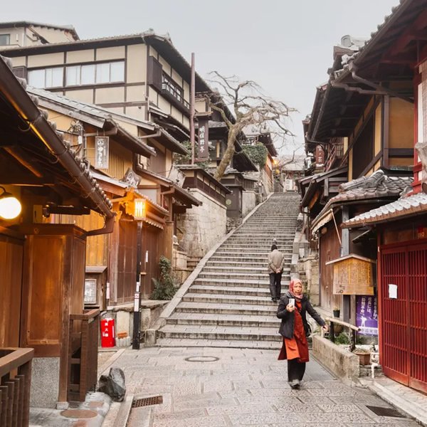 En Kioto, basta doblar una esquina para pasar del siglo XXI al siglo XVII. Pero hay un rincón en particular donde ese salto en el tiempo se siente como un hechizo: los callejones de Ninenzaka y Sannenzaka, dos pendientes empedradas que serpentean hacia el Templo Kiyomizu-dera. Caminar por aquí es como abrir una pintura japonesa de la era Edo: casas de madera perfectamente conservadas, faroles de papel, mujeres con kimono, aromas de té matcha y dulces recién horneados. Este es uno de los lugares más encantadores y auténticos de Kioto. Un lugar donde el turismo y la tradición no compiten, sino que conviven con respeto.